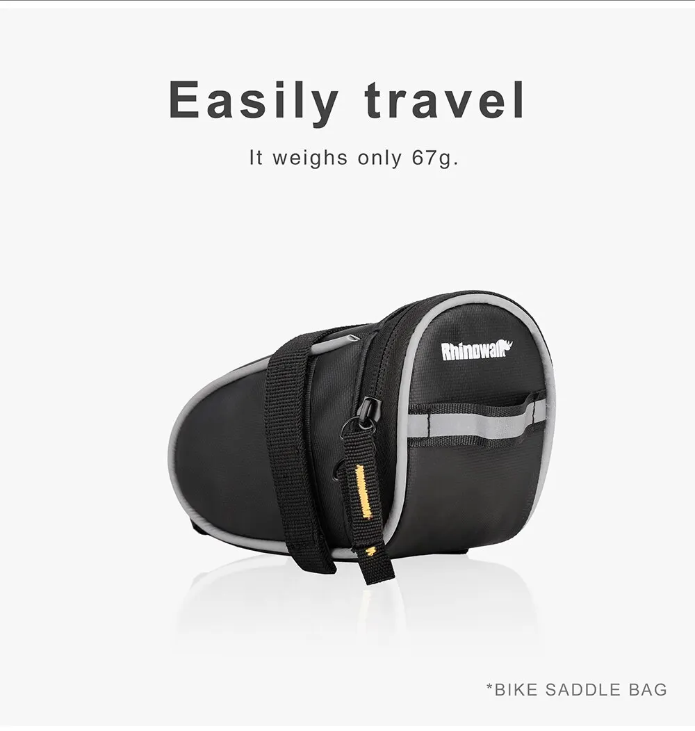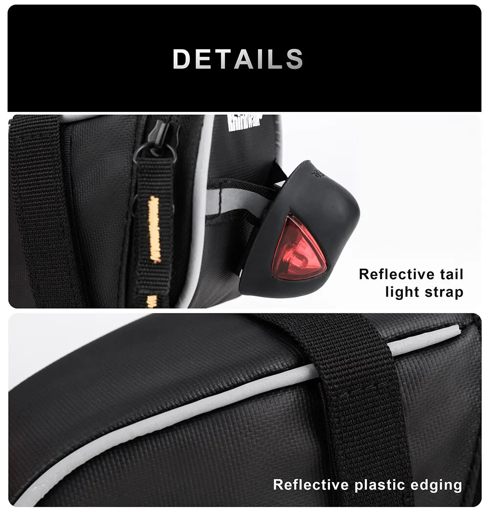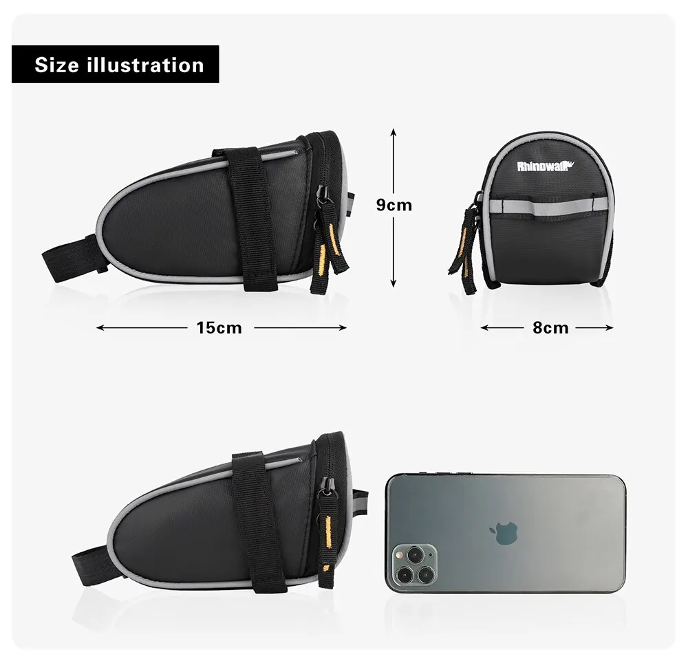 Rhinowalk Bike Saddle Bag 0.8L Small Waterproof Storage Black Tail Rear Pack Accessory Kit Tool Reflective MTB Road Bicycle Bag