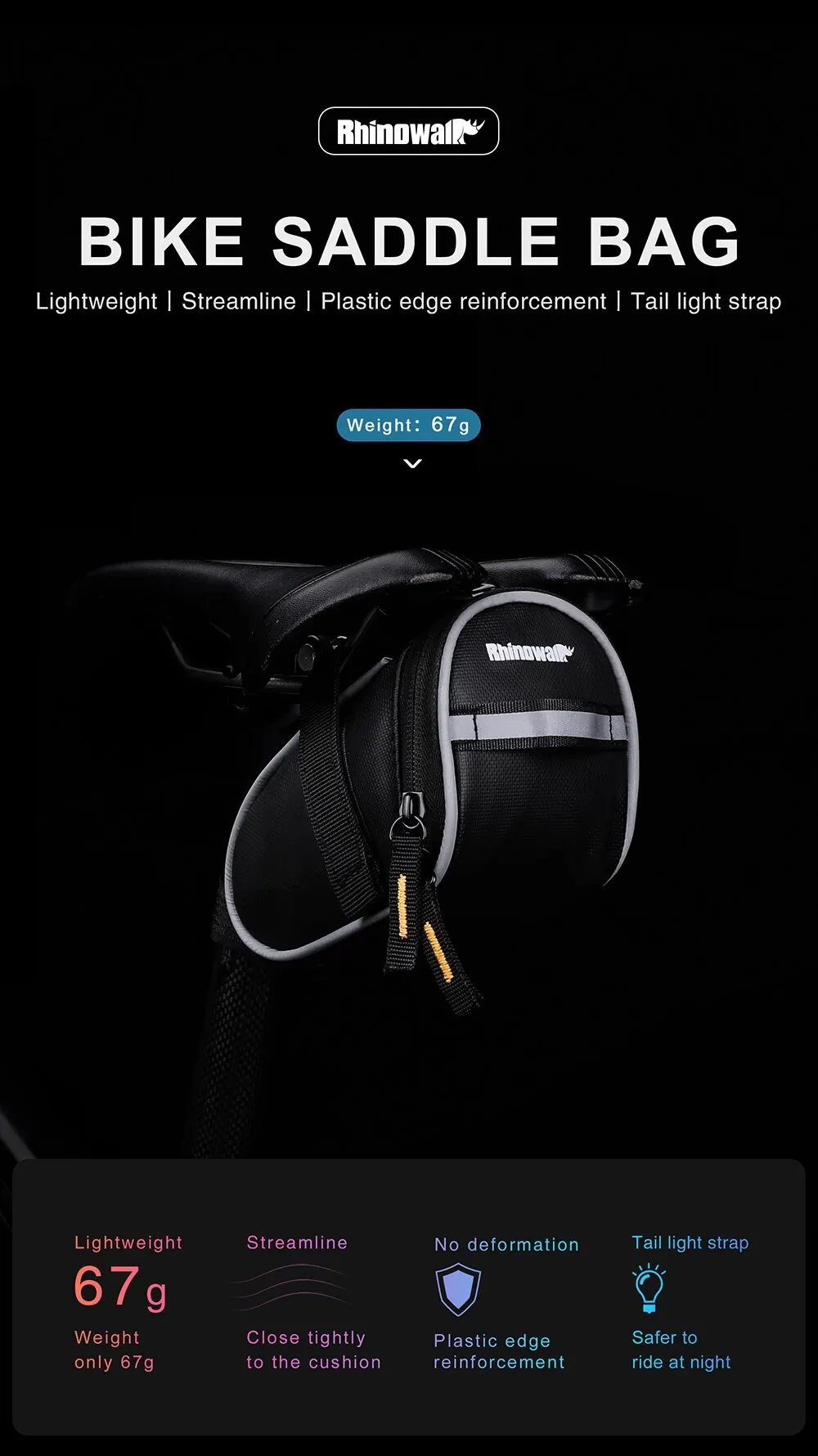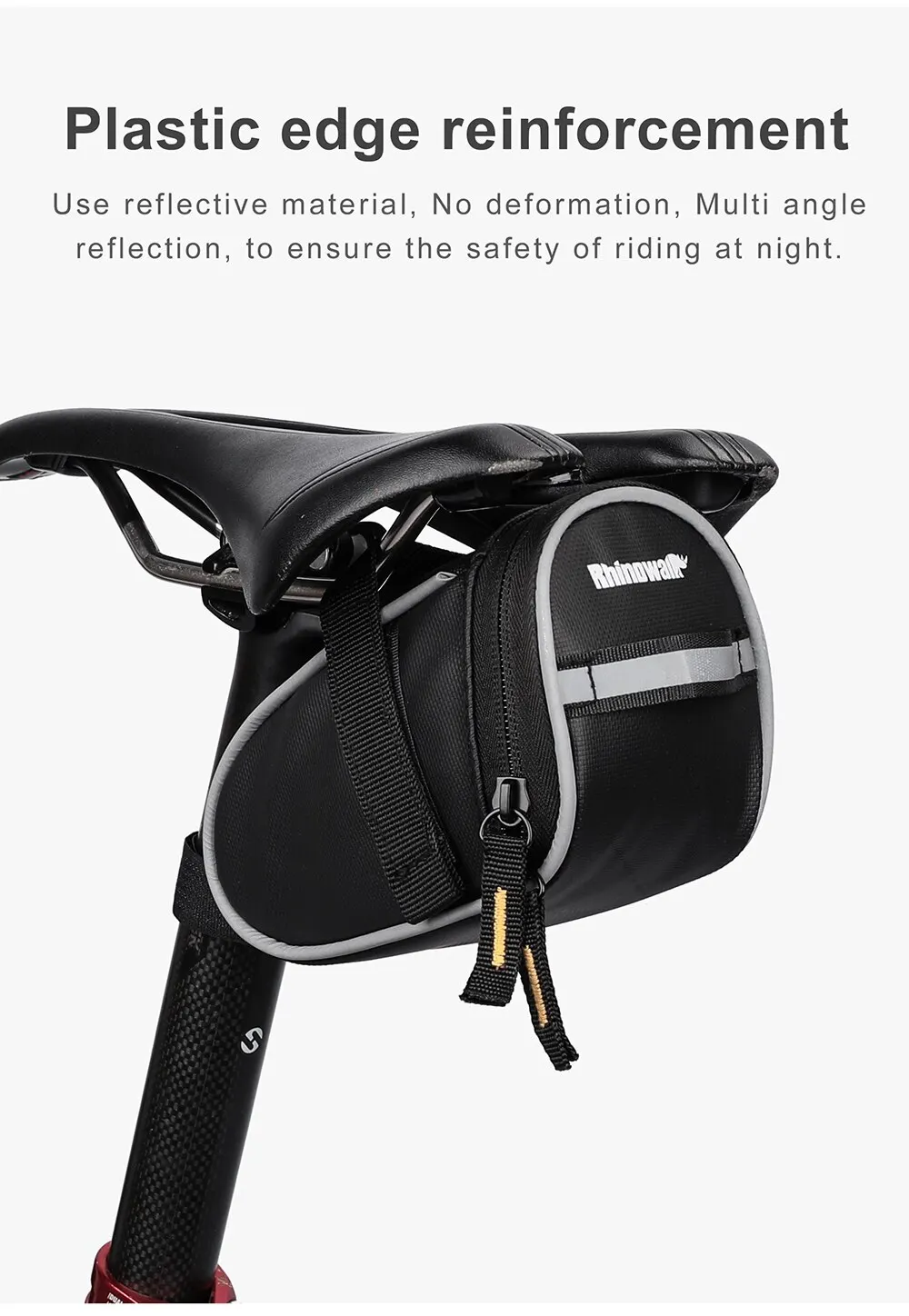 【REFLECTIVE PLASTIC EDGE REINFORCEMENT】 Use reflective material, no deformation, multi angle reflection. With reflective tail light strap and logo to ensure the safety of riding at night.